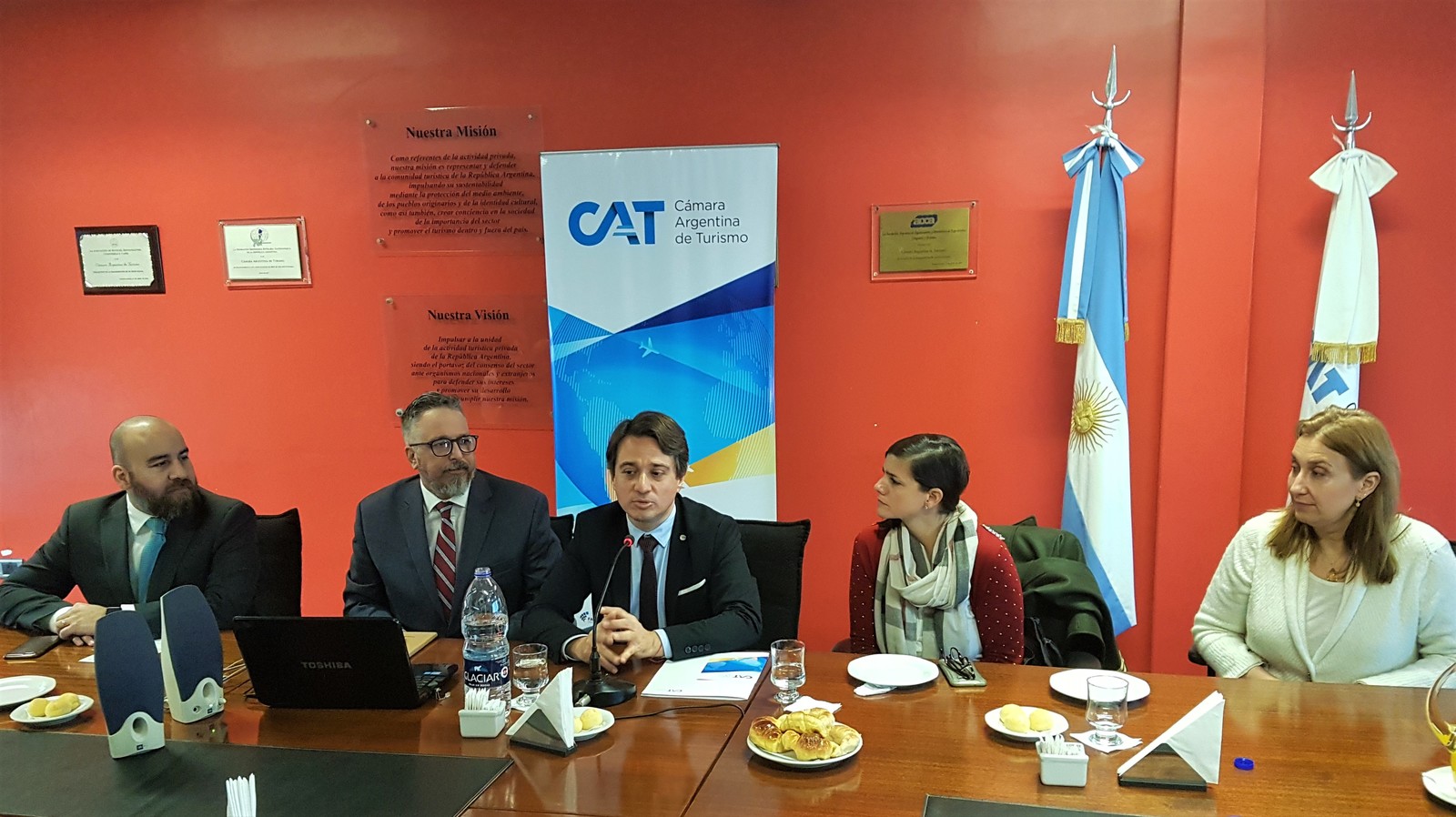 La presentación fue encabezada por el secretario de la CAT, Marcelo García; el presidente y vicepresidente de la Cámara de Comercio Gay Lésbica Argentina (CCGLAR), Pablo De Luca y Gustavo Noguera, respectivamente; la representante del Instituto Nacional de Promoción Turística (Inprotur), María Mercedes Blasi; y el responsable del Segmento LGBT del Ente de Turismo de la Ciudad de Buenos Aires, Felipe Crevatini.