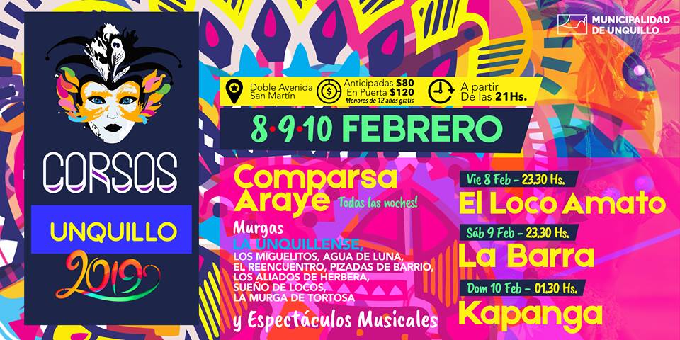 La doble avenida unquillense (San Martín) volverá a ser escenario del máximo corso de Sierras Chicas. Los días 8, 9 y 10 de febrero, comienza una fiesta única, con disfraces, agua y espuma loca. Las murgas y comparsas (actores por convicción) le pondrán el ritmo y color a noches inigualables, la mística del corso sigue …