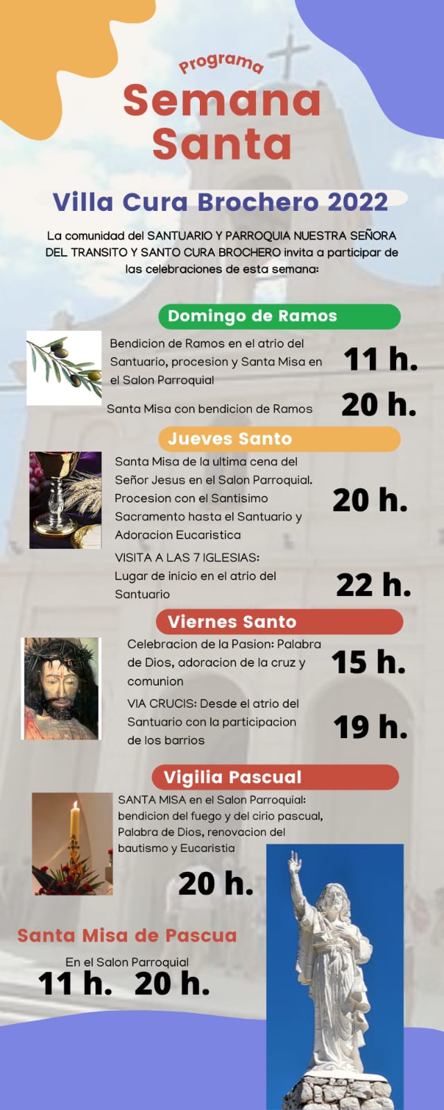 – SÁBADO SANTO: Vigilia Pascual / Misa 20 horas.