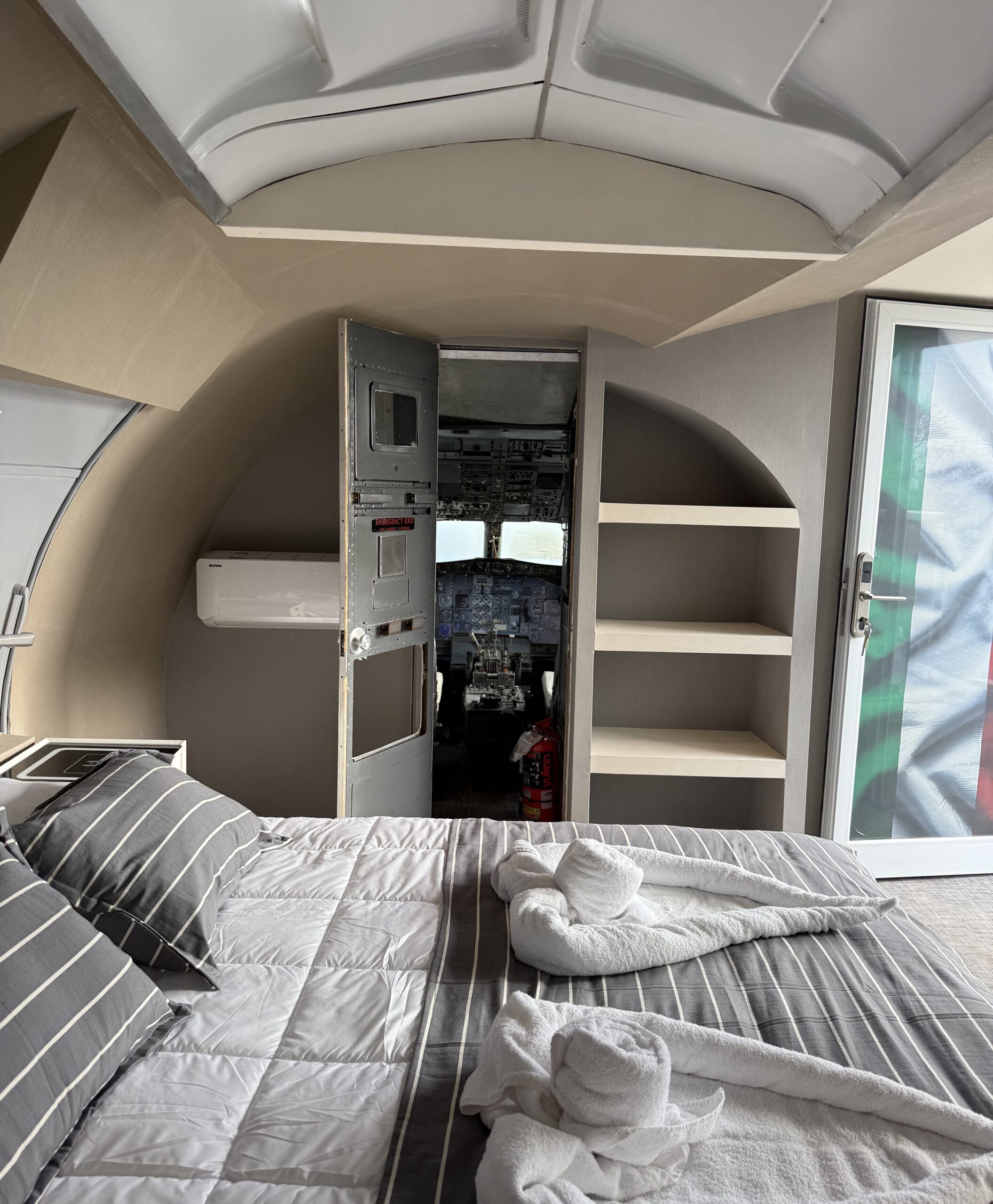 Además de dormir dentro de un Boeing restaurado, los huéspedes pueden disfrutar del spa y el restaurante del hotel contiguo. La tarifa por noche parte de los $250.000.