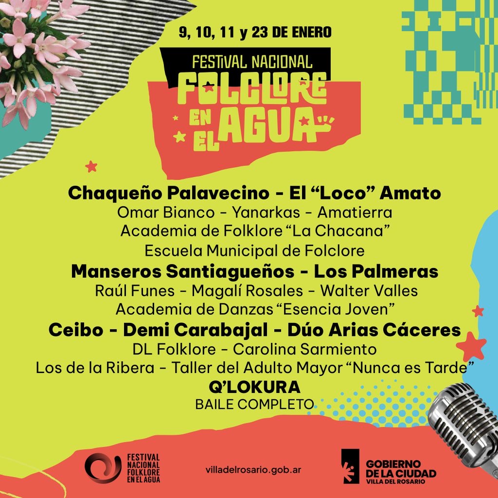 La ciudad de Villa del Rosario ya palpita una nueva edición de su tradicional Festival Nacional de Folclore en el Agua, que celebrará su 58° edición del 9 al 11 de enero de 2026, con una noche adicional el 23 de enero dedicada al cuarteto.